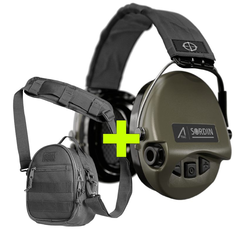 ACE słuchawki oliwkowe + torba na słuchawki Impact Sport, MSA Sordin – dark grey to praktyczny, solidny i estetyczny zestaw dla każdego strzelca.
