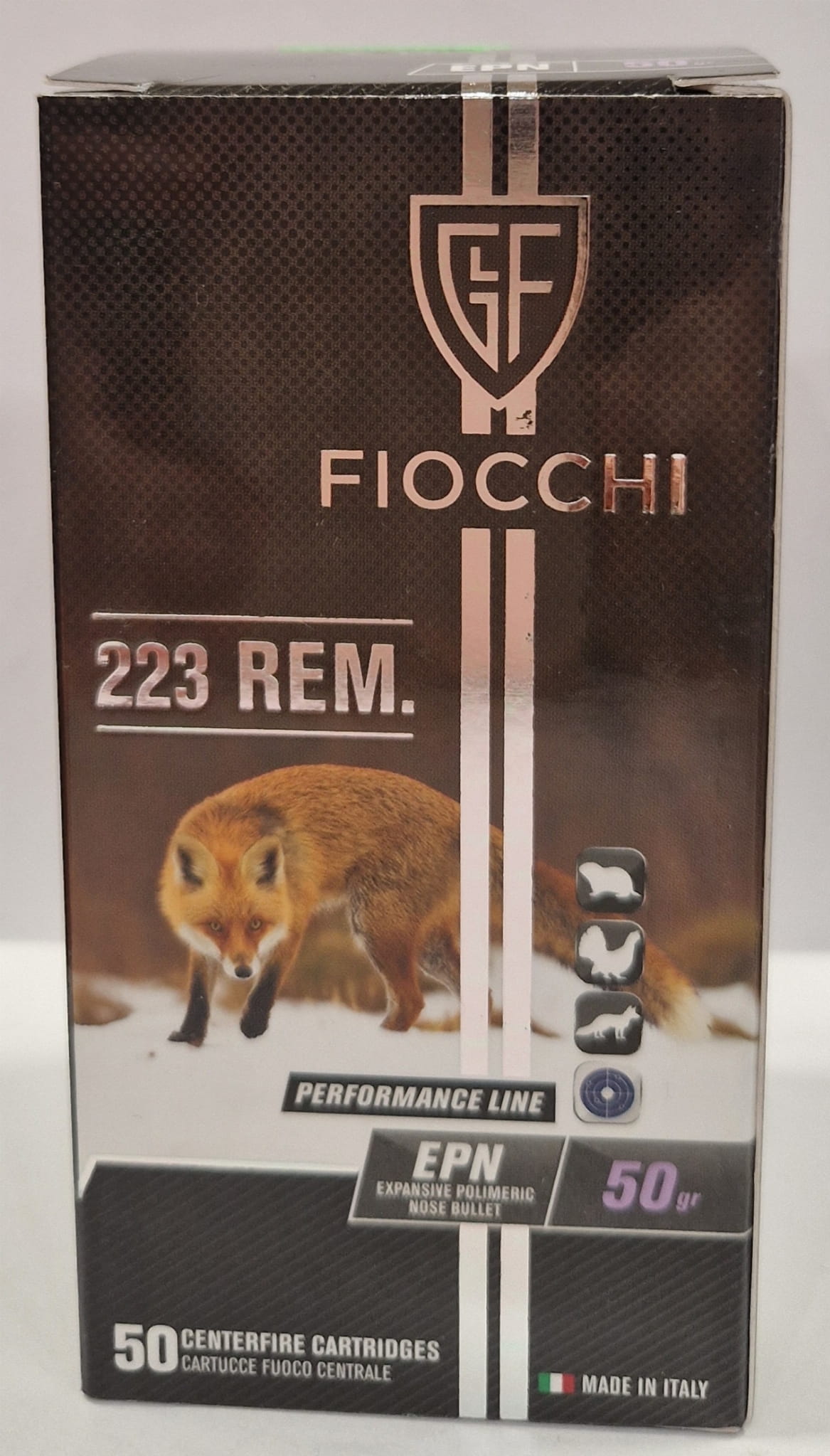 Amunicja .223 Remington produkcji włoskiej firmy Fiocchi z pociskiem o masie 3,6 grama (50 grainów) typu Expanding Point (EPN) to nabój przeznaczony do polowań na małą i średnią zwierzynę, a także do kontroli szkodników. Jest to lekka i szybka amunicja, która charakteryzuje się natychmiastową i agresywną ekspansją.