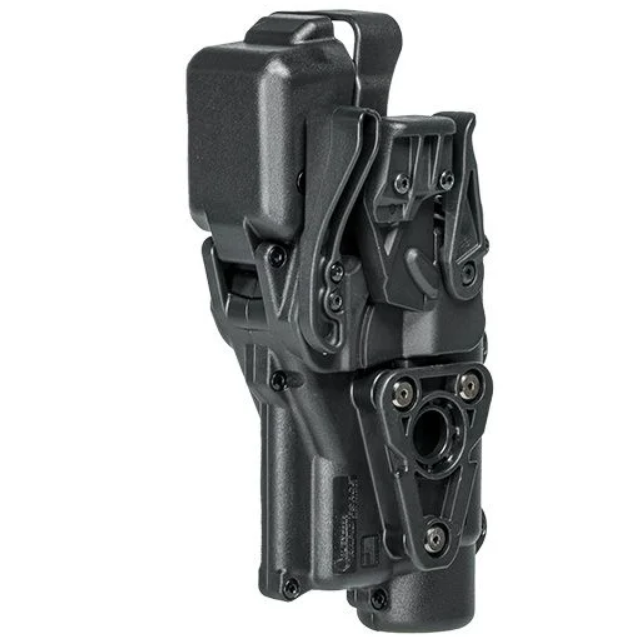 Modularność: Kabura jest kompatybilna z systemem szybkiego montażu QDS (Quick Detach System), co pozwala na przepięcie jej między pasem, panelem udowym a montażem samochodowym w kilka sekund.
