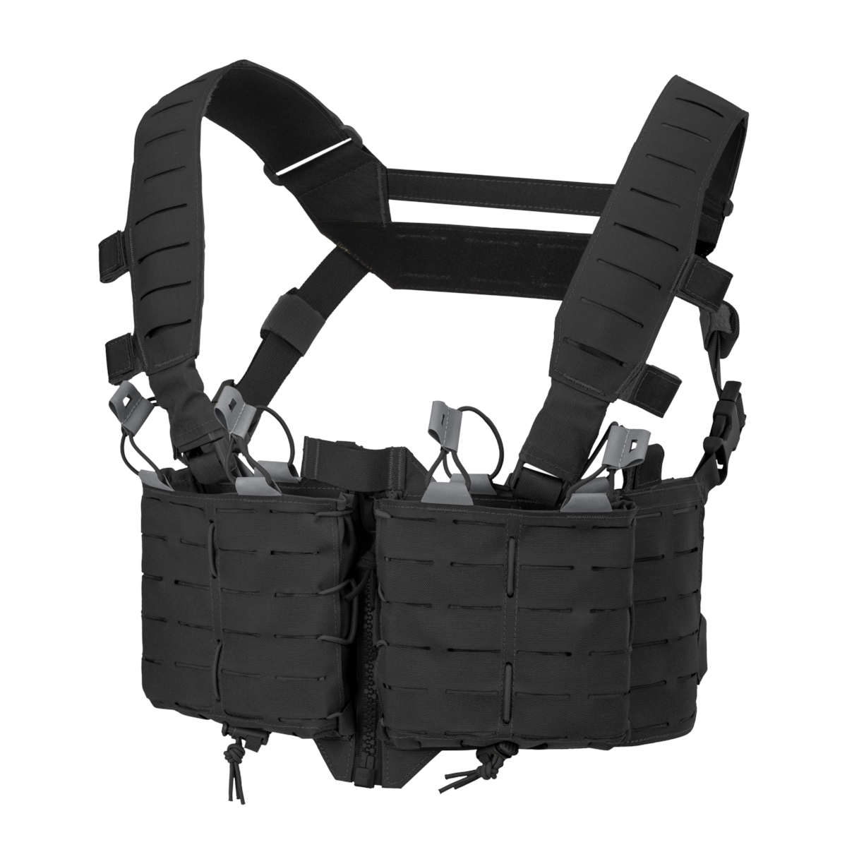 Laser-Cut Cordura 500D: Zamiast tradycyjnych naszywanych taśm, zastosowano laserowe wycięcia w laminacie. Dzięki temu kamizelka nie chłonie wody, jest lżejsza i ma niższy profil, co zapobiega zaczepianiu o elementy otoczenia.