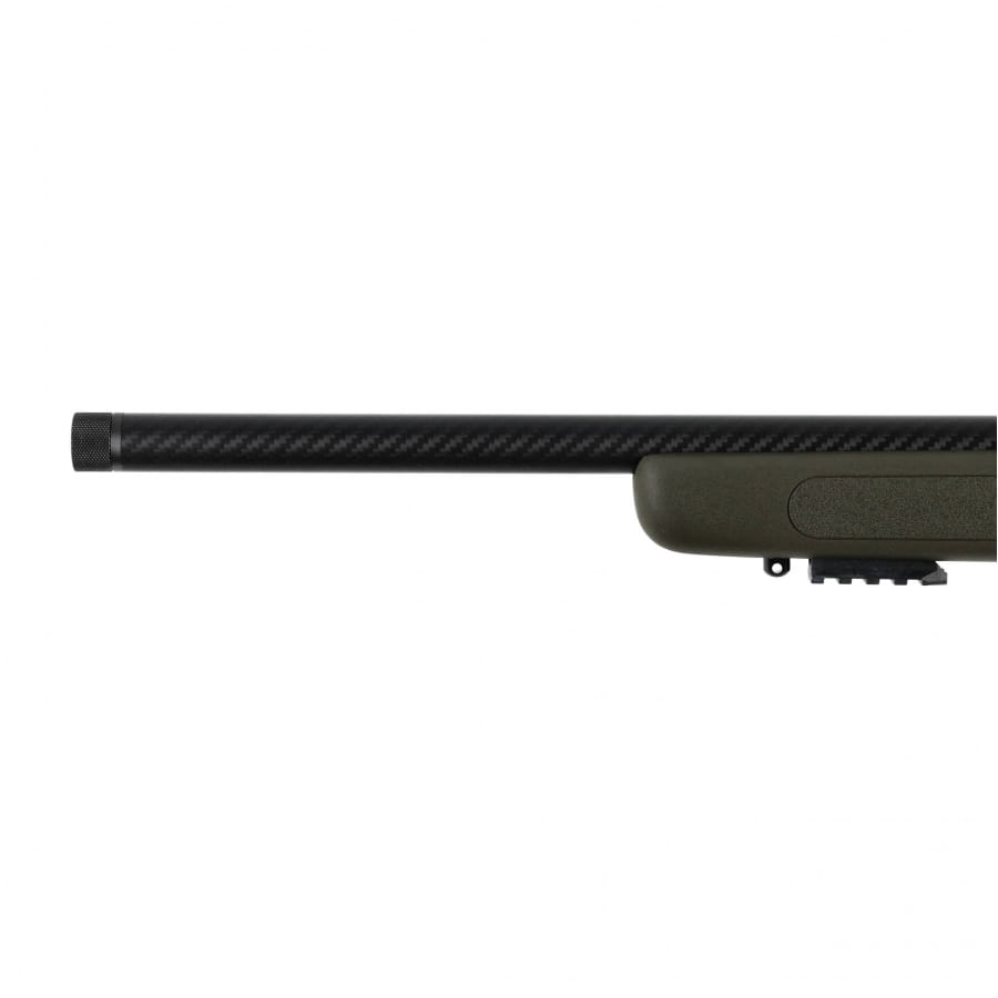 Karabinek wyposażony jest w kutą na zimno lufę typu med bull o długości 485 mm, co zapewnia wysoką celność i powtarzalność strzałów. Lufa została wykończona powłoką z włókna węglowego, która nie tylko poprawia estetykę, ale również zwiększa odporność na czynniki zewnętrzne. Gwint zewnętrzny 1/2 UNF pozwala na montaż kompensatora lub tłumika dźwięku.