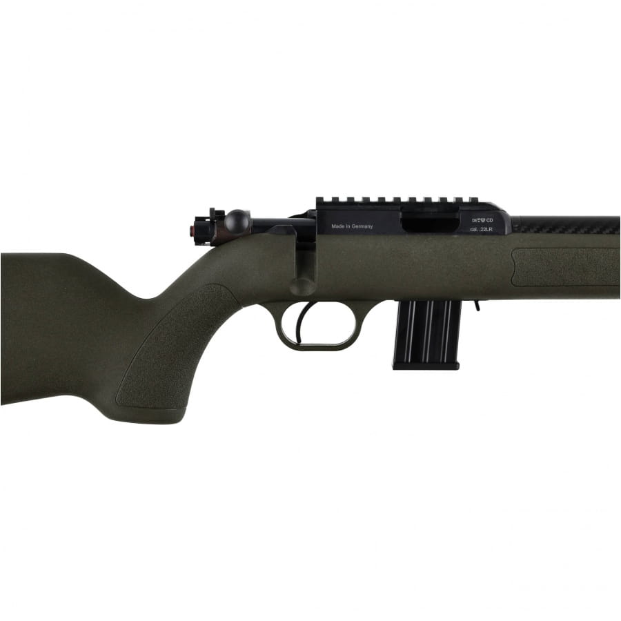 Karabinek wyposażono w dwie szyny Picatinny – jedną na grzbiecie, drugą pod łożem – umożliwiające montaż celownika optycznego oraz dwójnogu. Broń zasilana jest z wyjmowanego magazynka o pojemności 10 nabojów, co czyni ją w pełni funkcjonalnym narzędziem do strzelectwa precyzyjnego.