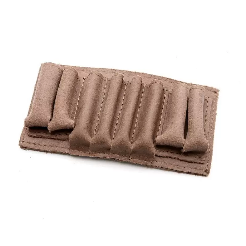 Główną zaletą tej ładownicy jest jej bezgłośne działanie. Dzięki zapięciu na nitowany knopik, dostęp do amunicji jest całkowicie dyskretny – nie musisz obawiać się żadnych niepożądanych dźwięków, które mogłyby spłoszyć zwierzynę. Sakiewka oferuje praktyczne rozwiązanie organizacyjne: posiada cztery przegrody na amunicję kulową oraz cztery na amunicję śrutową, co pozwala na łatwe uporządkowanie nabojów. Można ją wygodnie nosić na pasie.