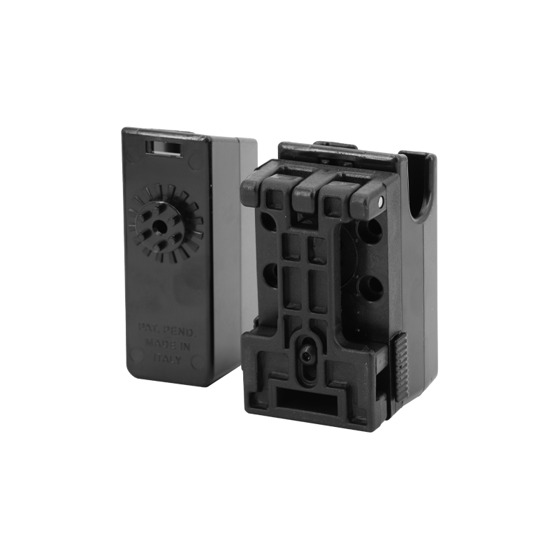 Ładownica Ghost 360° jest dostępna z klipsem otwierającym Clip D, wykonanym z najwyższej jakości technopolimeru dostępnego na rynku. Możesz łatwo otworzyć i zamknąć klips, podnosząc dwie dźwignie po bokach, co umożliwia szybki montaż i demontaż dowolnych akcesoriów lub kabur Ghost, które korzystają z tego systemu.