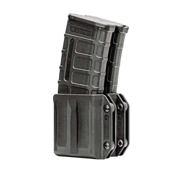 - Konstrukcja idealnie obejmuje standardowe magazynki w kalibrze 5.56/.223, utrzymując je w stabilnej pozycji bez ryzyka wypadnięcia.