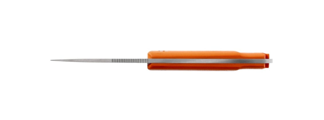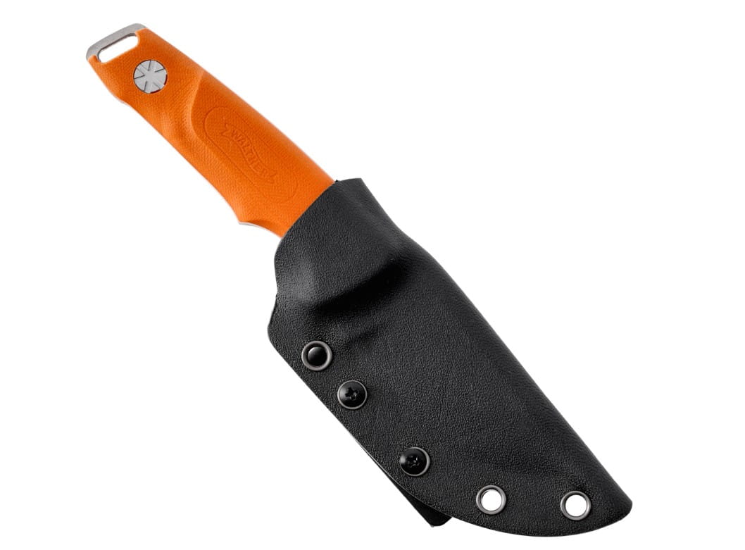 Pomarańczowy kolor chwytu ułatwia szybkie odnalezienie noża w terenie, co ma szczególne znaczenie podczas pracy w lesie lub na łące.