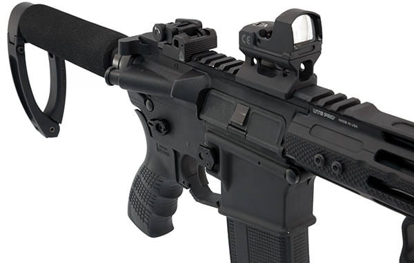 Obustronny zwalniacz magazynka do platformy AR15 wykonany ze stali oraz aluminium. Jego obsługa jest wygodna zarówno w użytku lewo- jak i prawostronnym. Wygodną konstrukcję wyposażono w antypoślizgowe przyciski. Jego instalacja jest łatwa i intuicyjna, tak samo jak użycie. Producent do zestawu dołącza niezbędne akcesoria montażowe.