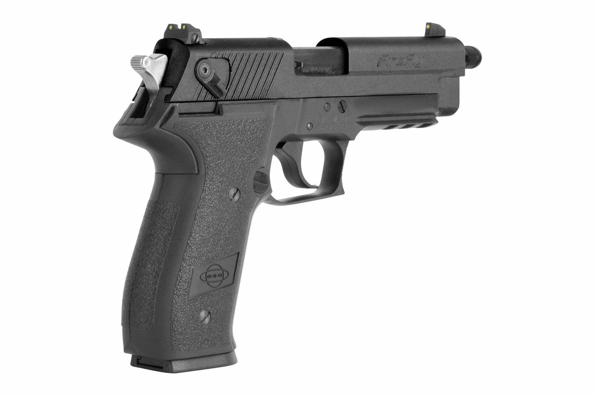 GSG Firefly SD .22 LR to pistolet samopowtarzalny kalibru .22 Long Rifle, zaprojektowany jako mniejsza replika SIG Sauer P226. Dzięki temu zachowuje ergonomię i obsługę charakterystyczną dla większych pistoletów centralnego zapłonu, z niskim odrzutem i tanim strzelaniem.