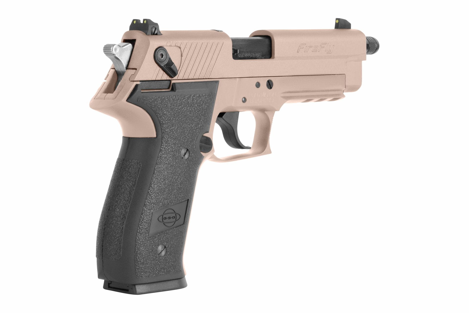 GSG Firefly SD .22 LR to pistolet samopowtarzalny w kalibrze .22 Long Rifle, zaprojektowany jako pomniejszona replika SIG Sauer P226. Dzięki temu pistolet oferuje realistyczną ergonomię i sposób działania przypominający pełnowymiarowe pistolety centralnego zapłonu, przy jednocześnie niskim koszcie amunicji i minimalnym odrzucie.