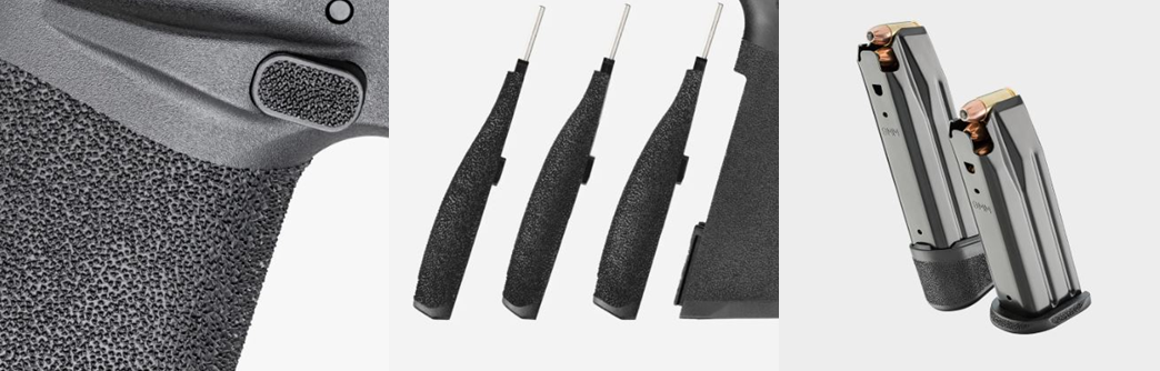 - Wymienne tylne okładziny chwytu