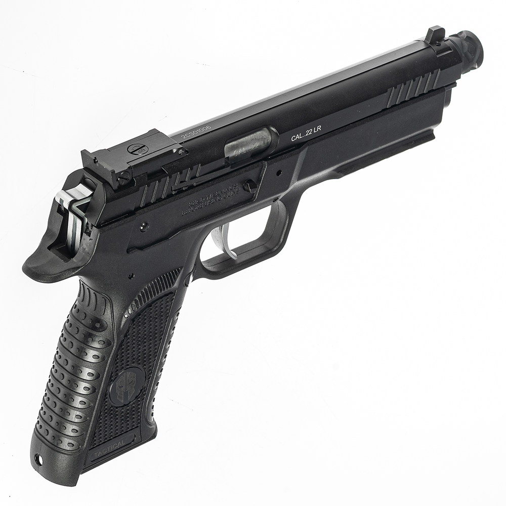 Pistolet FORCE 22 L TACTICAL posiada polimerowy szkielet oraz aluminiowy zamek, co czyni go wyjątkowo lekkim – jego masa to zaledwie 715 g. Wydłużona lufa o długości 145 mm poprawia stabilność broni, zapewniając lepszą celność podczas strzelania na krótkich i średnich dystansach.
