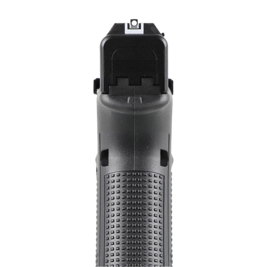 Korpus wykonano z tworzywa sztucznego, a do dyspozycji masz 1 szynę montażową na akcesoria. To praktyczne, jeśli chcesz doposażyć pistolet zgodnie z własnymi potrzebami.