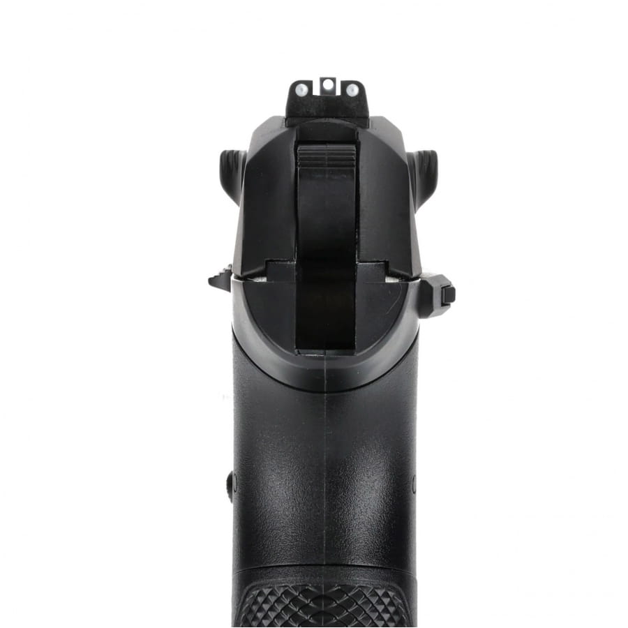 Pistolet zasilany jest kapsułą CO2 12 g, co pozwala szybko przygotować wiatrówkę do strzelania i wygodnie korzystać z niej w warunkach rekreacyjnych.