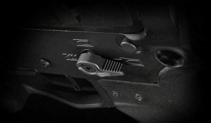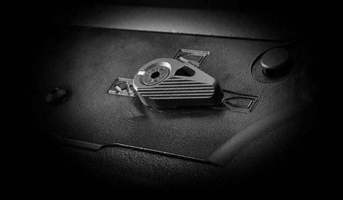 Niskoprofilowy selektor ognia do karabinków AR-15 zaprojektowany z żebrowaną konstrukcją dla łatwiejszej obsługi.