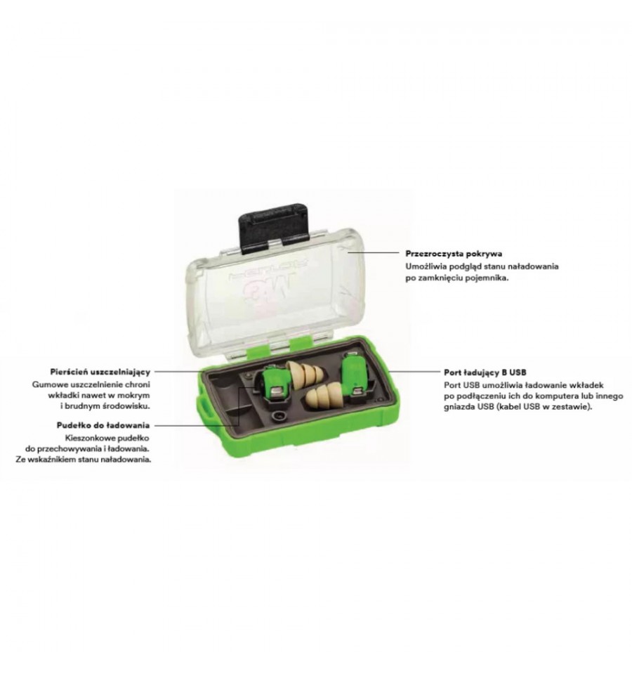 Słuchawki 3M Peltor elektroniczne wkładki zielone