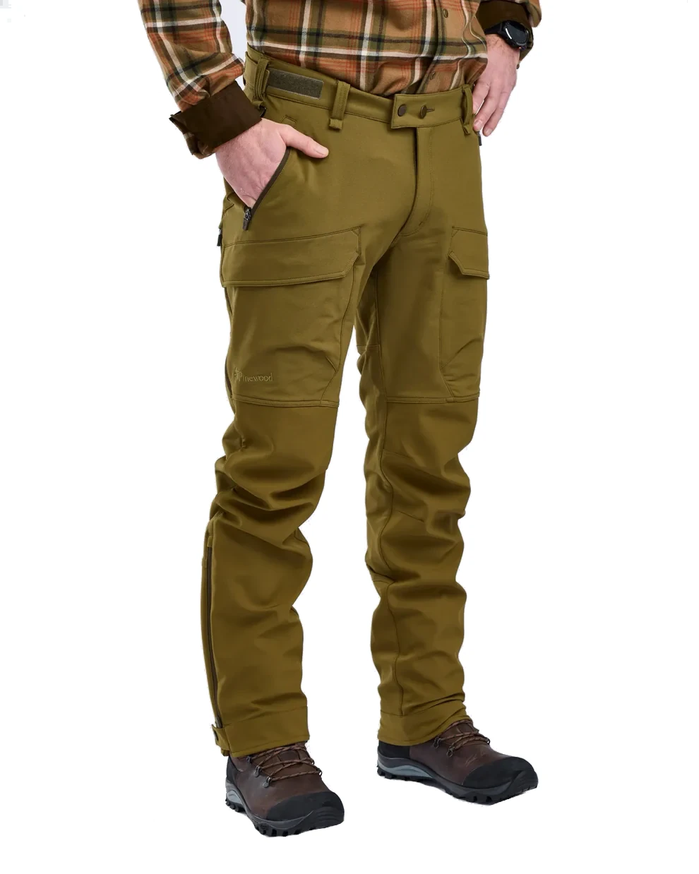 Spodnie myśliwskie Pinewood posiadają elastyczny pas z podwyższonym tyłem, który stabilizuje spodnie podczas aktywności. Regulowane nogawki na rzep umożliwiają dopasowanie do różnego rodzaju obuwia.