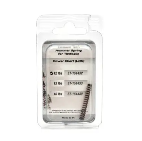 Sprężyna kurka o zmniejszonej sile docisku Eemann Tech Hammer Spring, dedykowana do pistoletów Tanfoglio Stock II oraz Stock III. Umożliwia to dostosowanie siły nacisku kurka do indywidualnych preferencji strzelca, co przekłada się na lepszą kontrolę i płynniejszy cykl strzału.