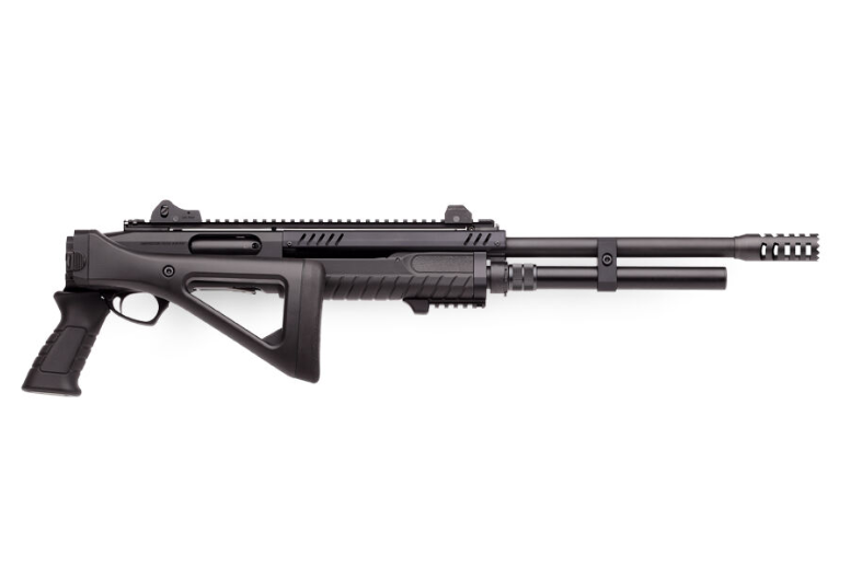 Fabarm STF12 Compact to nowoczesna strzelba typu "pompka" kalibru 12/76, zaprojektowana dla strzelców poszukujących kompaktowej i niezawodnej broni. Wyposażona jest w 11-calową lufę o wierceniu Tribore z kompensatorem, co poprawia komfort strzelania. Na komorze zamkowej znajduje się szyna Picatinny, a regulowane przyrządy celownicze, stylizowane na te z karabinów AR-15, zapewniają precyzyjne celowanie. Rurowy magazynek mieści 5 nabojów.